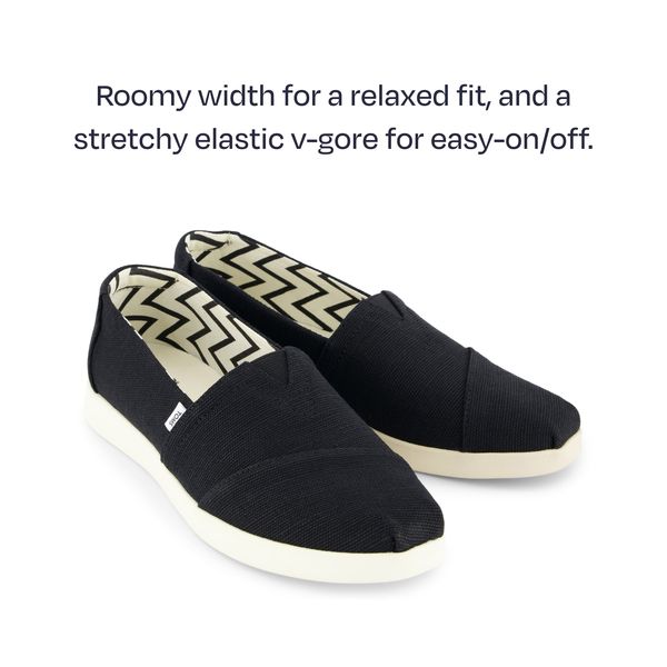 Black Heritage Canvas, 10021574TOMS Alpargata Plus has a relaxed fit. We recommend ordering the size you normally wear. If you are used to our slimmer fitting Alpargata Classic, then we recommend sizing down half a size for a more snug fit.