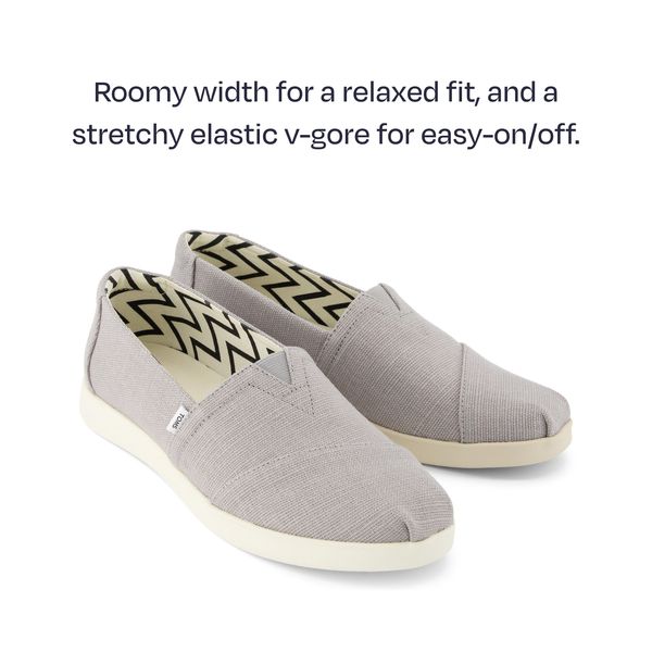 Drizzle Grey Heritage Canvas, 10021572TOMS Alpargata Plus has a relaxed fit. We recommend ordering the size you normally wear. If you are used to our slimmer fitting Alpargata Classic, then we recommend sizing down half a size for a more snug fit.