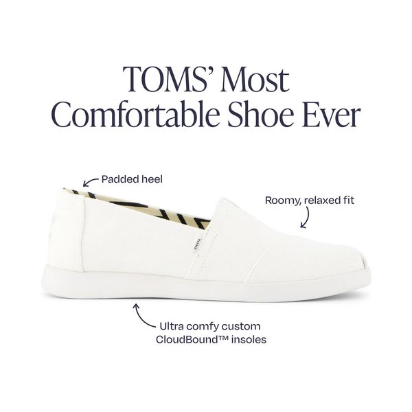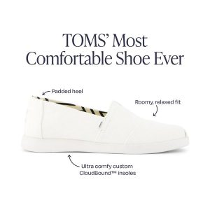 White Recycled Cotton Canvas, 10021577TOMS Alpargata Plus has a relaxed fit. We recommend ordering the size you normally wear. If you are used to our slimmer fitting Alpargata Classic, then we recommend sizing down half a size for a more snug fit.