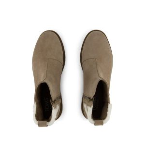 Meet the utility-inspired boot with a polished aesthetic. Astrid is a durable and lightweight lug boot with sophisticated details like a soft suede upper, cozy knit gore and decorative leather strap with pin hardware details. An effortless style for every day. Suede upper. TOMS leather products support responsible manufacturing via the Leather Working Group.