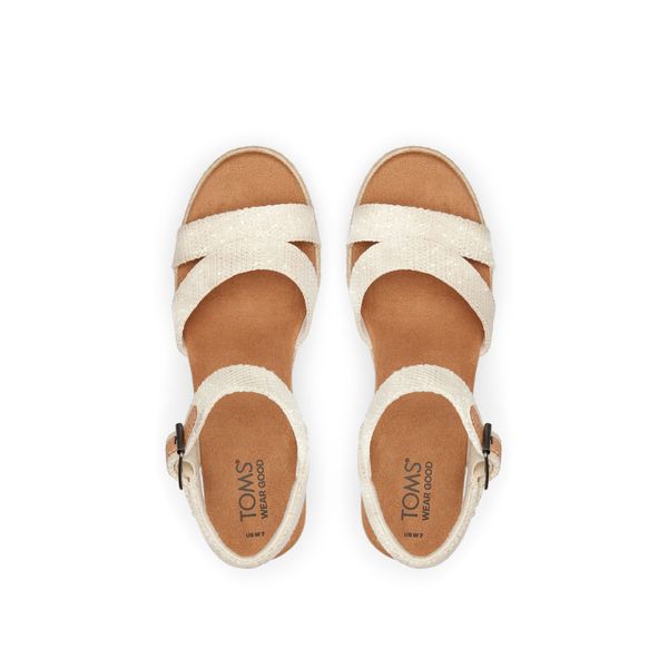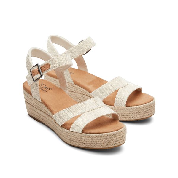 Metallic Natural, 10020758TOMS run true to size and are available in medium width only. We recommend ordering the size you normally wear. If you are typically in between sizes, we recommend going with the smaller one since TOMS will stretch slightly as you break them in.