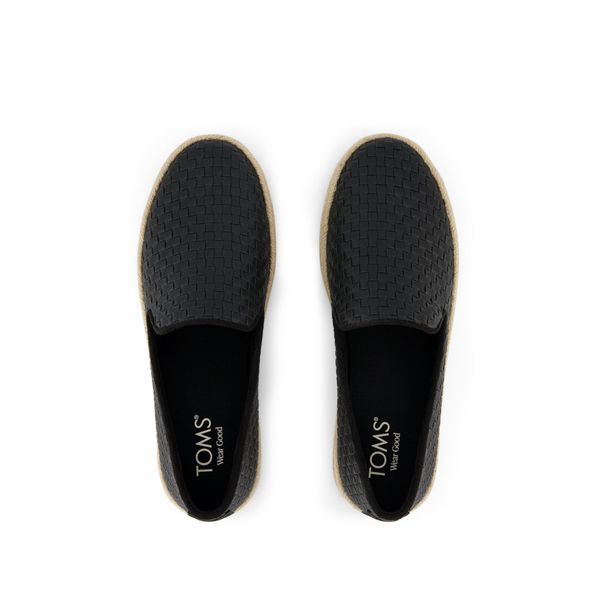 Black Woven Basket PU Leather, 10022578TOMS run true to size and are available in medium width only. We recommend ordering the size you normally wear. If you are typically in between sizes, we recommend going with the smaller one since TOMS will stretch slightly as you break them in.