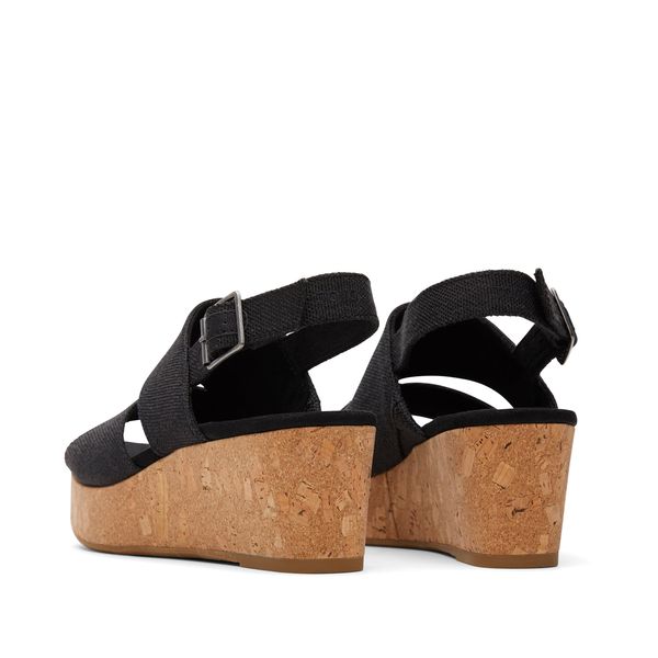 Stylishly transition into warmer weather in our mid-height Claudine sandal. Featuring a secure slingback design, eye-catching asymmetrical cutouts, and a versatile cork-wrapped wedge. Easily the cutest and most comfortable platform in your closet.Woven mélange textile upper.