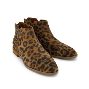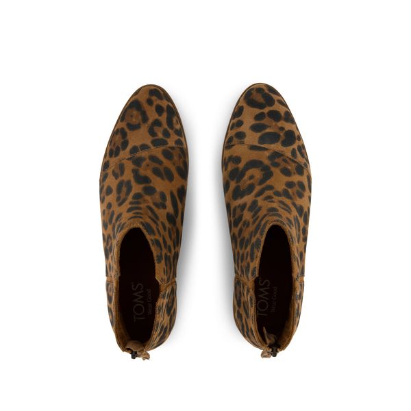 Stylish simplicity. The Rylie is a sleek, everyday ankle bootie designed with leopard-print suede uppers for a pop of personality, a handy heel zip for easy on/off and CloudBoundâ„¢ insoles for all-day comfort. Leopard-print suede uppers. TOMS leather products support responsible manufacturing via the Leather Working Group.