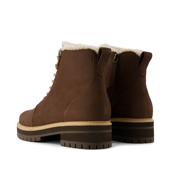 Take on any type of weather in the Wylder ankle boot—made durable and stylish in water-resistant brown Nubuck leather with a lugged sole, cozy faux-fur lining and comfy CloudBound™ insoles. Wear on an outdoor adventure or with any casual outfit.Water-resistant leather uppers. TOMS leather products support responsible manufacturing via the Leather Working Group.