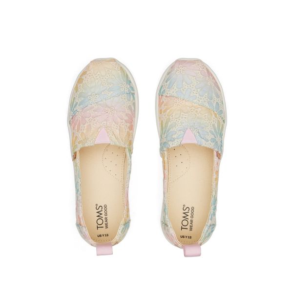 Floral Lace Ombre, 10020627TOMS run true to size and are available in medium width only. We recommend ordering the size you normally wear. If you are typically in between sizes, we recommend going with the smaller one since TOMS will stretch slightly as you break them in.